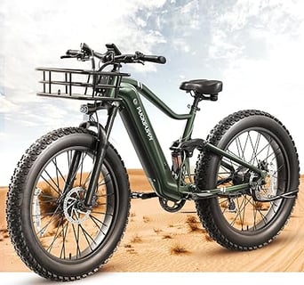 Boxer Electric Bike for Adults 1000W, 48V 20AH Battery Ebike, Full Suspension 26" Fat Tire E Bike, 28MPH 80Miles Range Mountain Electric Bicycle, 7 Speed Hydraulic Disc Brakes